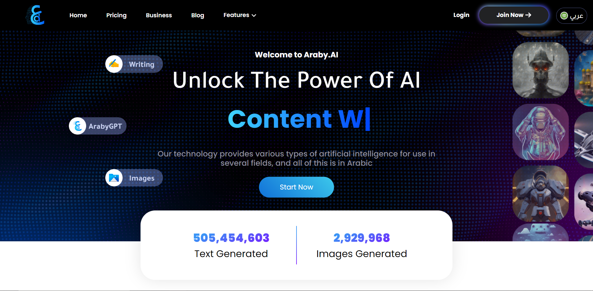 の目玉機能の一つAraby.AI は、テキストを生成し、言語を翻訳する能力です。これにより、言語の壁にかかわらず、円滑なコミュニケーションが保証されます。さらに、このプラットフォームは、ChatGPT Large Language Model (LLM) の力を利用して、アラビア語と英語の双方において魅力的な経験を提供し、今日のグローバルな交流において不可欠な双方向の理解を実現しています。
