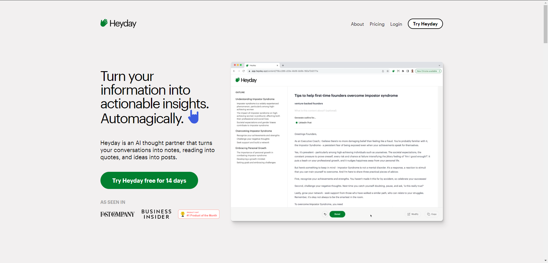 - Enhanced Reading and Research: Heyday improves the online reading experience by incorporating relevant content from the internet. It acts as a digital library, storing valuable resources and making them easily accessible for future reference.