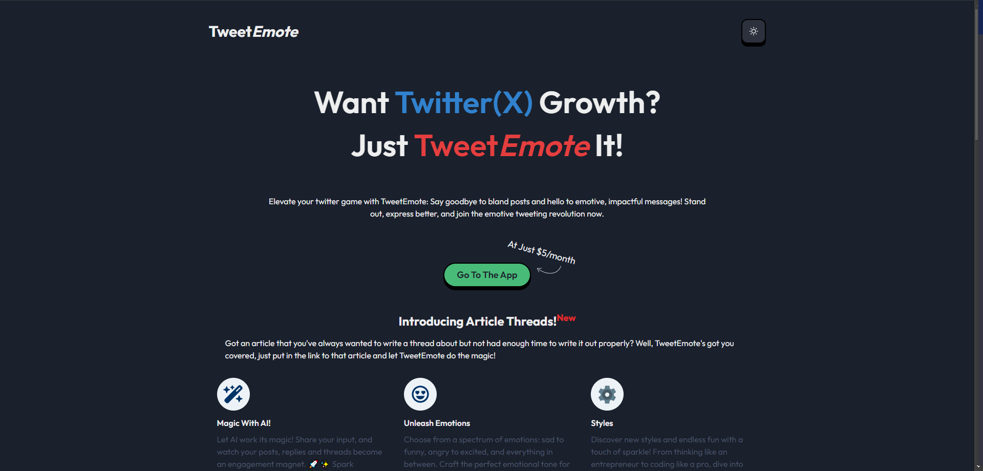 TweetEmote is an "AI-powered social media assistant" that revolutionizes tweeting by offering a range of emotional and stylistic options, making it easier for users to create engaging and expressive tweets.