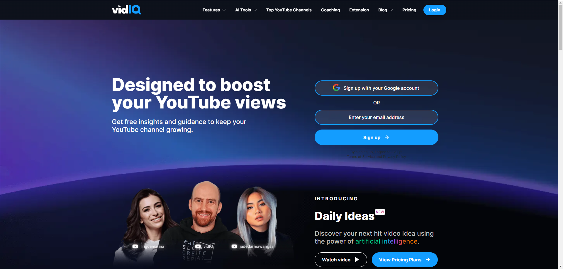 VidIQ stands out for its AI-driven approach to providing daily ideas, coaching, and tools for keyword and competitor analysis. This AI integration offers personalized guidance in areas like keyword research and video design, along with predictive analytics to forecast video performance. The goal is to empower video creators with the necessary insights and tools for channel growth on YouTube.